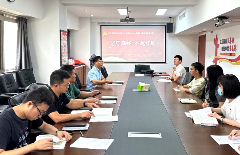 为深入开展学习贯彻习近平新时代社会主义思想主题教育,努力在以学铸魂、以学增智、以学正风、以学促干上见实效。8月2日,德赢VWIN集团第一党支部开展主题为“坚守底线 不越红线”的党课交流,集团党委委员、第一支部书记夏兵主持会议并进行讲党课交流,支部全体党员、入党积极分子和支部覆盖部门轮岗管培生参加学习会并交流学习体会。